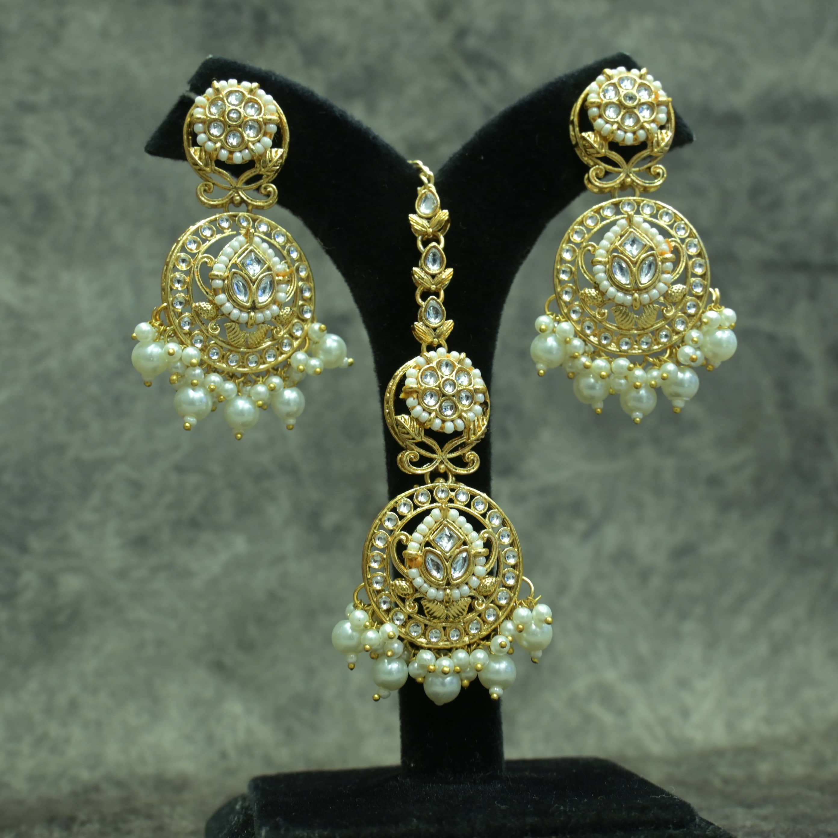 Traditional And White Stone Embellished Necklace with Earrings & Mang Tikka